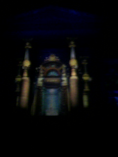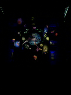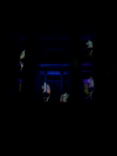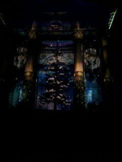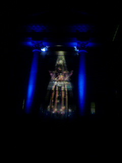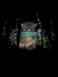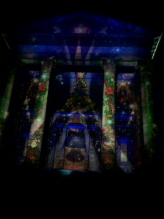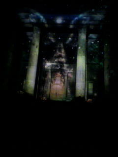図書館の石の壁に映し出される映像