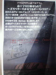 家人が突然「野球を見に行くので休みにした!」とか宣うので sunny01さんにくっついて、ラフォーレ琵琶湖に行って参りました。 ええ、 はぁあああああん ;´Д`・・・いいぃ・・・ ;´Д`(だからそういう書き方やめれ) 何でしょう・・・ 何の罠!? あのひと・・・酒井雄二の声からは何かが出てるね。 溶ける。 身体も心も溶ける。(α波か1/fゆらぎ波か・・・) 凝り固まった筋肉もほぐれる(遠赤外線か・・・) シミも取れる(レーザーか・・・) 皺も取れて脂肪も溶ける(ラジオ波か・・・) ・・・。すんごい誇大広告のまがい物(笑) あれでもっとふたりきりで囁くように言わr・・・(妄想激しいので強制終了) 兎に角! もしCDやDVD出たら買う!間違い無く! 出来たら「酒井雄二が数える眠れぬ夜の1億匹のひつじ」なぞも出して頂きたい。 「新婚旅行で人気のオーストラリア、中でもお勧めの・・・」の(ような)くだりには 「あんたが言うか・・・」とちょっとだけ思いましたけれども。 えーと。 黒ぽんうるさい(笑) 酒井雄二で脱力(良い意味で)していると、突然黒ぽんの声が刺さるのね。 いや、好みの問題なんだろうけれども、黒ぽんの歌声って尖ってるから はぁああああああんんん ;´Д` てなってる時には痛いのね。 ラジオのBGMの時もいっつも「黒ぽんうるさい!」と暴言吐く私には どうにも・・・ (ゴスペラーズの、ソロぽんの 「歌」として聴く時は大好きよ) 「月光」は激しく良かったです(日本語乱れまくり) 北さんは言わずもがななので省略して・・・ 「月光」のヤスの声が凄く好きなので、映像と相まって至福の時間。 が・・・ 海中だった筈なのに突然空の月が迫り来る!(笑) 衝突するのか!と思う動きで、しかも「ゴゴゴゴゴゴゴゴゴゴ!!」 と音を立てて。 せっかくヤスの声にはぁああああああああんん ;´Д`(しつこい・・・) てなってんのに、台無しというか、もう、何だ?こりゃ!! と、ところどころ突っ込み処もちゃんと用意されつつ(違) ずるずるに溶けました。 排水溝から流れてしまいそうな勢いで溶けました。そのまま琵琶湖の水になって 近畿の皆さんの飲み水になるところでした。 ああ、近くのプラネタリウムでもやってくんないかなー。 週1で魅せられに行くね。 ところで。 「音楽もすべてがゴスペラーズの楽曲」て書いてあったのですが インストの部分もそうだったの? 何かの曲なの? ちなみに・・・観客は私たちを入れて6人でした(笑) きのこ採り放題。 ベランダの、レインリリー(ようやく名前を覚えて購入できたらしい/笑)を植えたプランターから 取れども取れども雨後にはにょこにょこ。 今日も朝見たら6本生えていました。 他の鉢やプランターも同じ土使っているのに、なぜかこのプランターだけ。 食べられるきのこならいいのに!! 昨日のミニライブには行けませんでした。 フリーライブだったのに! チャリで行けたのに! 何ヶ月かぶりのライブだったのに!(卒フェスはなかったことになっている/笑) いくつものマイナス要素が重なって、出ることが出来ませんでした。 あうーん。 月末までには万事整えます。 福岡行きたい!福岡!(頭の中身もれてる・・・) 来月は27日のアレ行きたい・・・(さらにもれてる・・・) とりあえずは8日の新曲披露が楽しみです。 驚愕の新事実! お絵描き板で、右クリで色が保存できることに一昨日気付きました。 ひぃいいいい。 ちゃんと取説読めよ俺。 可能な限り既存の色で。必要に迫られたら数値をメモしておくか「明」「暗」を何回クリックしたか 「覚えておいて」色を選んでた自分万歳・・・・・・_| ̄|○ ト・・・も・・・あ・・・の・・・ トーンもいつも「あら?数値が・・・」ってやってんですが もしかして 記憶できる・・・ん・・・で・・・syo(自分で調べれ) ああ、何かすっごい海に向かって叫びたい(笑) 先生、マトリックスって何ですか。 こう、弾丸を避けて海老反るあれ・・・・・・・ ・・・・・・。調べてくるーーーーーー!(走) 拍手有難うございました。 ●夜の追記● 某3人組のCMソングに遭遇しました。 台所でテレビに背を向けていたところに「いつまーでもー♪」 つい「変わらぬあーいぅを~♪」と歌ってしまって「何だ?こりゃ。織田哲郎やん!」 と思い・・・ん?織田哲郎? どれどれ?と確認したらデリカでした(笑) そして、ナレには全く気付かなかった罠。 SEASONあたりからてつろーさんの洗礼を受けている私には、ううむ(笑)
